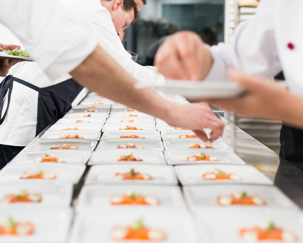 da Wikipedia: il catering, dal verbo inglese "to cater" che significa "provvedere al cibo, rifornire", indica il complesso delle operazioni di rifornimento in massa di cibi e bevande pronti che vengono effettuate da apposite organizzazioni nell'ambito di comunità, compagnie di trasporto, riunioni, cerimonie, ecc.